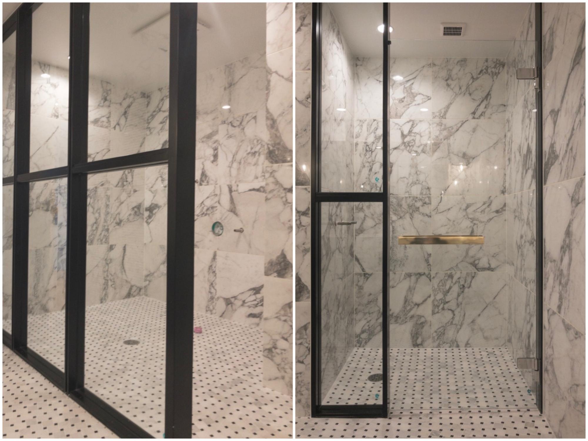 ドアノブやシャワーヘッドなどはゴールドで統一。